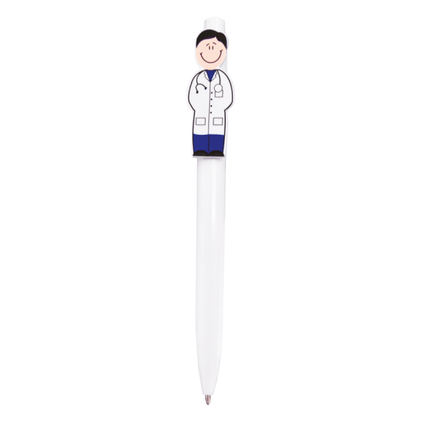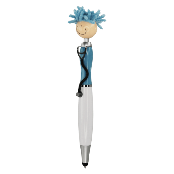 Bolígrafo plástico Doctor Fun con mop head, (limpia pantallas) con estetoscopio y punta touch